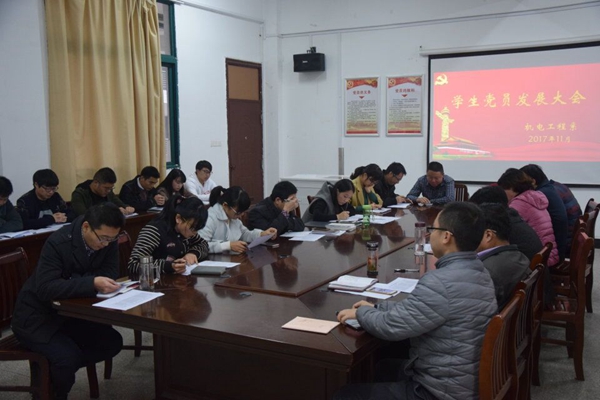11月16日下午,机电系第二党支部在208会议室召开学生党员发展大会,系分管学生工作负责同志、党支部全体成员及预备党员候选人参加了此次会议。