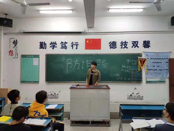 为增强学生对传销和非法集资的辨别能力,保护学生切身利益和人身安全,提高机电工程系2018级新生安全防范意识,杜绝校园诈骗情况的发生,该系团总支在18级城市轨道交通车辆技术班开展了防传销和防非法集资进校园主题教育活动。会议,由该班辅导员老师主持。