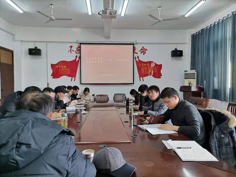 1月13日下午,机电工程学院在1号教学楼208会议室召开了机电工程学院、汽车产业学院“十四五”发展规划修订工作座谈会,学院院长刘磊率党政班子、专业负责人和高级职称教师出席了会议。