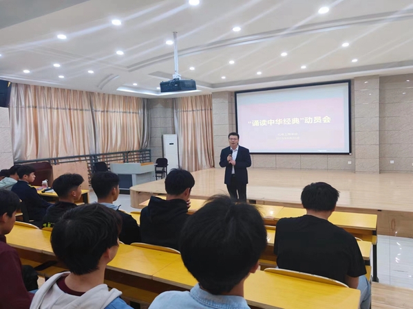 5月22日,机电工程学院在1号教学楼216教室布置推进“诵读中华经典”活动工作。被校团委遴选上的所有学生、学生会干部代表参加会议。