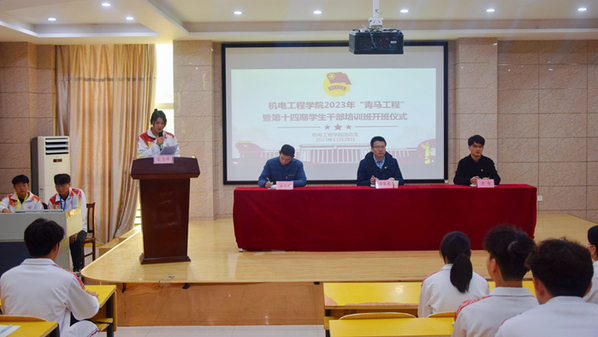 为深入开展好团员和青年学习贯彻习近平新时代中国特色社会主义思想主题教育,进一步提高学校优秀青年学生的政治素养、实践能力、综合素质,为党培育一批信仰坚定、能力突出、素质优良、作风过硬的青年马克思主义者,11月29日中午,机电工程学院在1号教学楼216教室举行了“青马工程”暨第十四期学生干部培训开班仪式,机电工程学院党总支副书记徐英武、团总支书记、团总支副书记、“青马工程”培训班全体学员参加了本次开班仪式,开班仪式由徐英武主持。