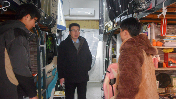 走访过程中,徐英武与学生们亲切交流,详细了解了学生们的寒假生活情况,鼓励同学们在新学期明确自己的学习方向、合理规划时间、积极参加各类竞赛、加强体育锻炼,同时,他对同学们提出了殷切的期望,希望同学们在新学期里不负韶华,坚定理想信念,努力学习专业知识,不断提升自身能力,努力成为德智体美劳全面发展的社会主义建设者,为自己留下丰富充实美好的大学时光。