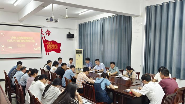 为全面贯彻落实党中央关于在全党开展党纪学习教育的相关要求,进一步加强党员的党性修养,提升党员的纪律意识,5月24日下午,机电工程学院党总支在一号教学楼208会议室召开全体党员大会,集中学习新修订的《中国共产党纪律处分条例》,旨在推动全面从严治党向纵深发展。学院党总支书记刘磊主持学习会,全体党政班子成员、全体党员参会。