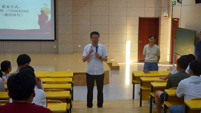 宣讲会开始后,潘伟首先向同学们全面细致解读了迎江区征兵政策,重点介绍了征兵基本条件、应征入伍流程、体检注意事项等,帮助同学们分析参军入伍的五笔账:前途账、健康账、阅历账、政治账和经济账,他鼓励同学们积极参军入伍,把个人理想追求融入强国强军伟业中,在军队这个大舞台施展才华,在军营这个大熔炉里淬炼成钢,随后,他还就同学们关注的热点问题逐一做了详细解答。