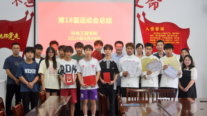 为进一步激励奋勇拼搏的精神,鼓励运动员们带动全体师生积极参与全民健身运动,增强身体素质,培养健全的人格,锻炼意志品质,6月20日下午,机电工程学院在一号教学楼208会议室召开第十八届运动会总结表彰大会,学院分管学生工作负责人,学生管理科科长、教学管理科科长、团总支负责老师、辅导员代表以及运动员代表等共计30余人参加。