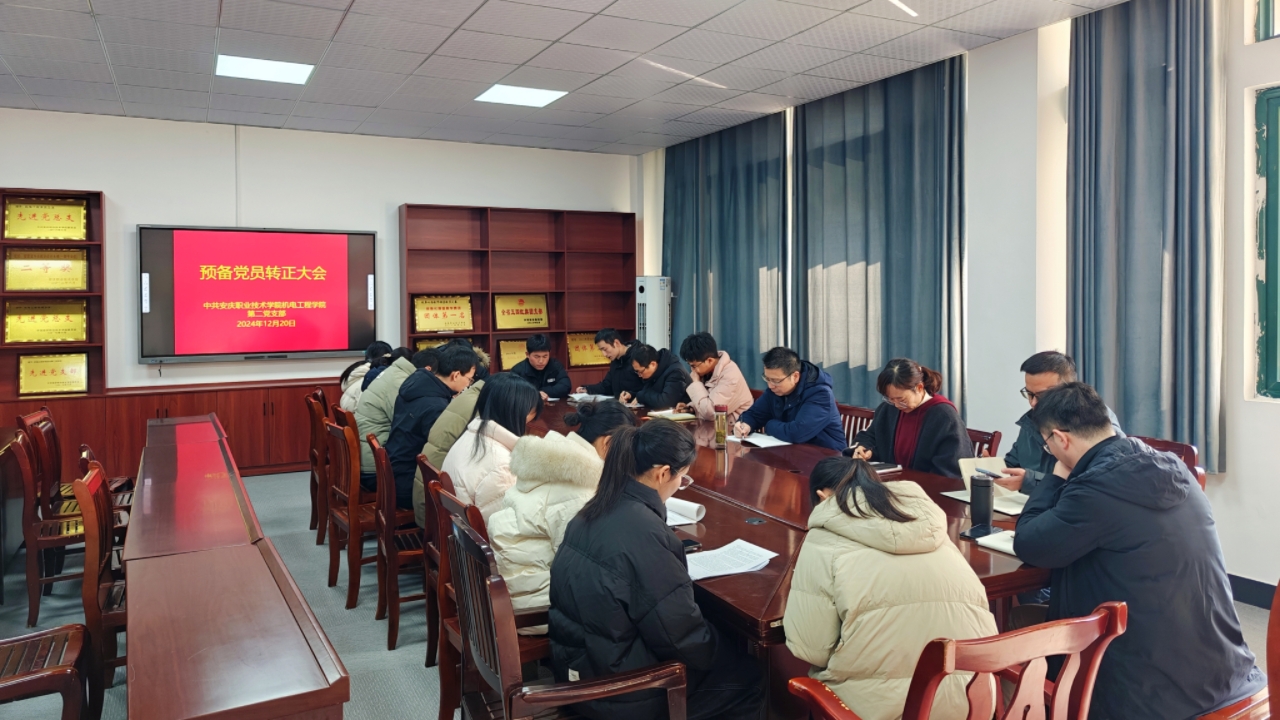 为进一步做好新时代党员发展和教育工作,增强支部的凝聚力和战斗力,12月20日,机电工程学院第二党支部在1号教学楼208会议室召开预备党员转正大会,支部全体党员同志参加活动。