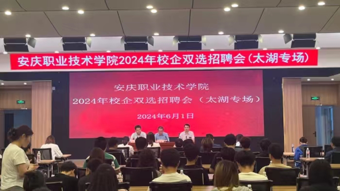 为积极引导我校毕业生在安庆本地就业,6月1日我校与太湖县共同举办2024年太湖专场招聘会。校招生就业处负责人主持会议并致辞。太湖县公共就业和人才服务中心副主任黄国林、太湖县企业服务中心副主任石曜、我校太湖籍2025届毕业生120余人以及所在二级学院辅导员代表参加活动。