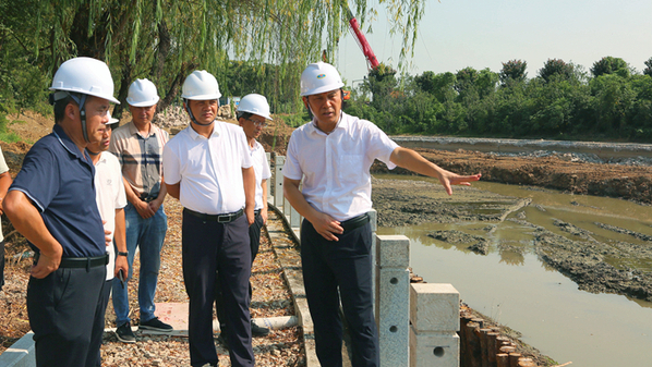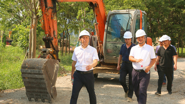 在行政楼多功能会议室、教学楼智慧教室改造施工现场,当施工单位介绍改造后的设备处于五年在领先、十年不落伍的水准,童宏葵一行听后非常高兴,强调要有超前意识,要给同学们创造良好的学习环境。在东湖治理项目施工现场,童宏葵一行详细了解湖底清淤、环湖步道、沿湖环境等建设情况,对沿岸设置栏杆和浅水区等做法给予肯定,强调改造后的东湖,将是校园里的一颗明珠,也是广大师生校园生活休闲放松的好去处,要把安全放在首位,要配备好救生圈等安全设施;要提升沿湖景观环境和水体质量,下一步可在水中适当投放鱼虾等,年底师生们就可以吃上自家的水产品。在体育馆看台施工现场,童宏葵一行发现看台台阶局促,设计不合理,现场办公,现场测算并进行了调整,加宽了台阶。在室内体育馆施工现场,童宏葵一行了解到我校地层环境复杂,桩基施工难度较大,强调不要盲目赶工期,基础不牢就会地动山摇,一定要确保桩基础施工质量。