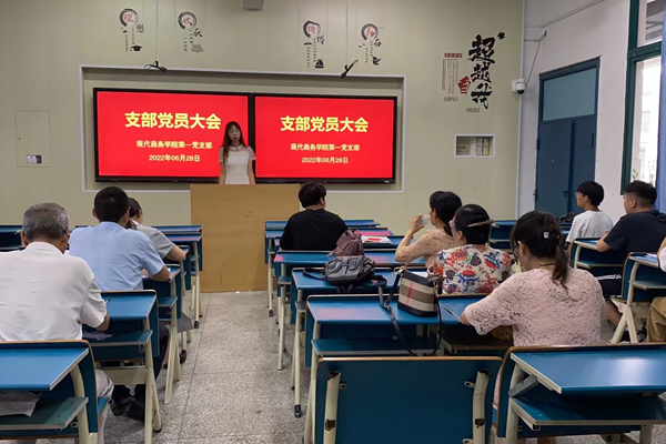 6月27日和28日下午,现代商务学院第一和第二党支部分别召开党支部会议,讨论并票决发展预备党员及预备党员转正事宜,出席本次会议的有我院两个党支部的党员老师。