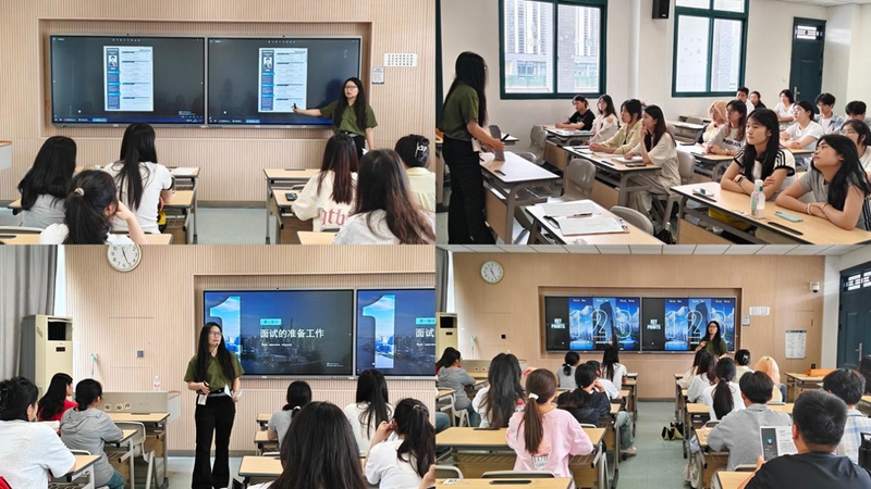 面试培训环节,辅导员结合自身职场经验,围绕优化简历、自我介绍、面试技巧等关键求职要素进行系统讲解。通过生动的案例分析、互动问答等形式,同学们深入了解企业的用人需求。培训现场气氛活跃,同学们积极提问,为后续的模拟面试奠定了扎实基础。