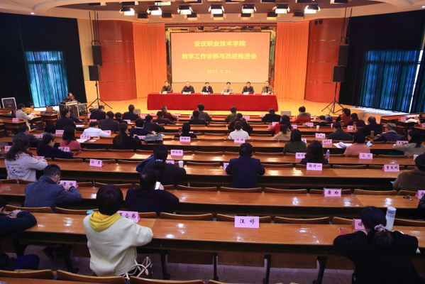3月24日下午,我校在图文一楼报告厅召开教学工作诊断与改进推进会。校党委书记王进主持会议并讲话。校长毕明生作动员部署。副校长谭维奇宣读《关于调整学校教学诊断与改进领导小组的通知》。党委委员沈良生、程飞、潘发生出席。全体中层以上干部、各二级学院内设机构负责人、各专业教学团队负责人、马克思主义学院和公共基础部课程负责人以及全体专职辅导员参加了会议。