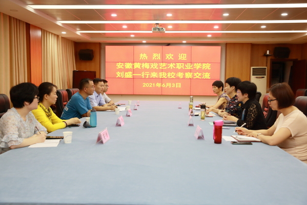 6月3日上午,安徽黄梅戏艺术职业学院党委委员、办公室主任刘盛一行到我校就教学诊改事宜进行考察交流。我校党委委员、副校长谭维奇在综合办公楼第二会议室接待了刘盛一行,诊改办、教务处、学生处、质量办负责同志参加交流。