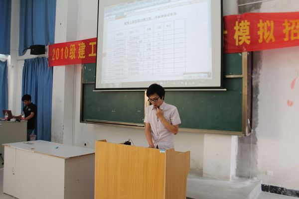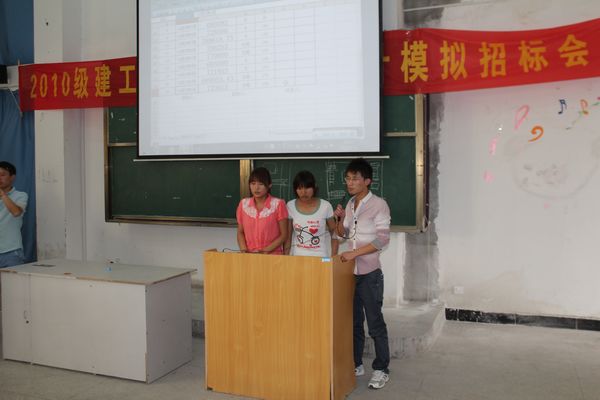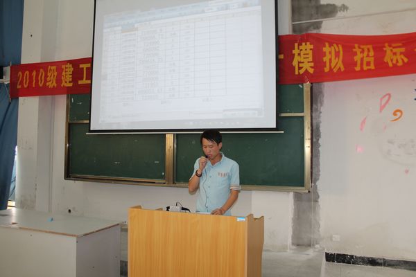 开标会伴随着热烈的掌声由孙院长宣布正式开始,来自10建工专业4个班的16个投标小组参与了投标。在主持人宣读开标会纪律后,按照“公开、公平、公正”的原则,由监标人和投标人共同检查了投标文件的密封情况,开标人、唱标人、监标人各司其职,当场开标。在各投标人简明扼要的陈述后,进入到了专家提问和投标人答辩阶段,这不仅是各投标人专业水平的展现,更是团队实力的较量,整个开标会严格按照招、投、开、评、定的正规程序顺利完成。