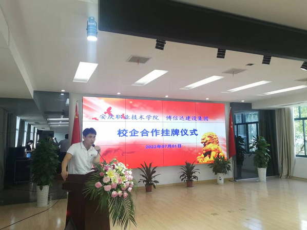为进一步深化校企合作协同育人,7月1日下午,我校与博信达建设集团有限公司隆重举行校企合作揭牌仪式,校长毕明生教授、博信达建设集团有限公司董事长汪贤勇出席揭牌仪式,企业各职能部门负责同志、我校建筑工程学院负责人及相关教师代表参加揭牌仪式。