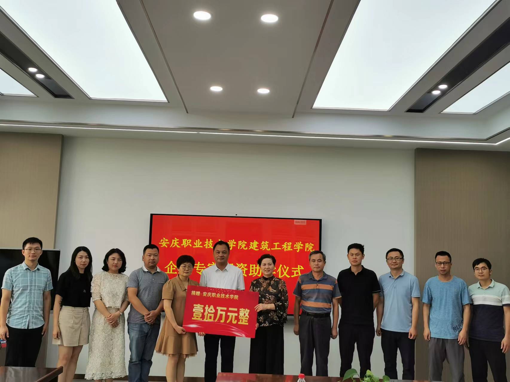 6月19日,国家级职教创新团队企业专家姚成华女士向我校捐资助学签约仪式在建筑工程学院会议室顺利举行。校党委委员、副校长程飞出席仪式并讲话,校基建处负责人、建筑工程学院党政班子成员及部分教师代表参加了签约仪式,仪式由该院负责人主持。