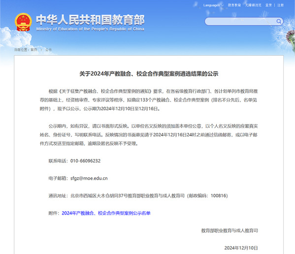 我校产教融合校企合作案例入选教育部2024年典型案例