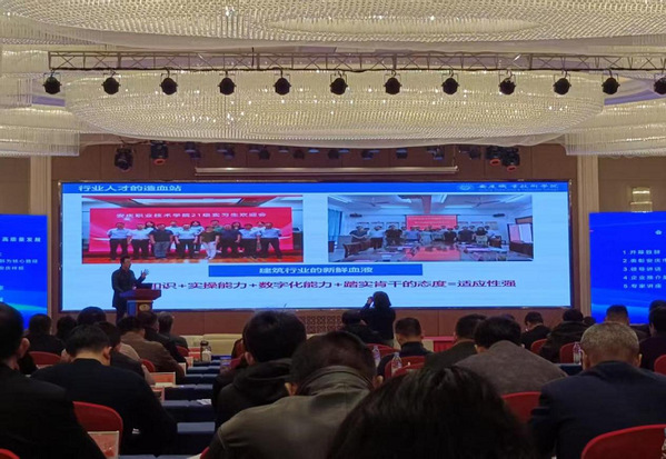 会上,金飞老师代表我校建筑工程学院做了题为“产教融合谋发展,校企协同育英才”的推介报告,他主要从“我们有什么?我们能做什么?”两方面,介绍了我校建筑工程学院的专业特色、团队优势和实训条件,以及我校如何优先为本地行业企业提供人才支撑?如何满足行业企业不同培训需求?如何校企联合开展新技术新工法攻关?金飞的推介与交流,得到与会企业的高度关注和积极回应。