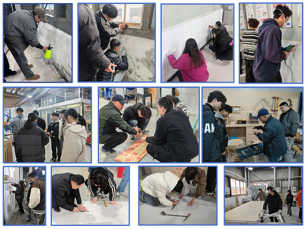 施工现场化身教学主阵地,手电钻的嗡鸣与激光水平仪的绿光交织成独特的课堂韵律。学生们身着工装,分组担任施工员、质检员等职业角色,在"原墙铲除-定位弹线-基层铺设-面层装饰"的标准化流程中,亲历材料裁切、节点收口等12项关键技术环节。当最后一片护墙板严丝合缝安装完毕,传统木工坊焕发新生——温润的仿石材肌理与流畅的金属收边,见证着00后工匠的成长印记。