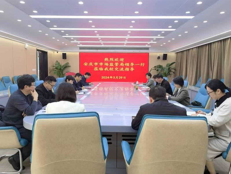 3月29日,安庆市市场监督管理局副局长金鑫、经开区市场监督管理局局长李怡和一行六人来我校交流指导。校党委副书记、校长毕明生,校党委副书记李克让热情迎接。机电工程学院、信息技术学院、农林与服装学院和建筑工程学院、科创平台、科技处有关负责同志参加会议。