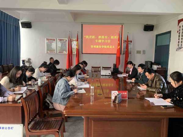 管理服务学院党总支开展“找差距、抓落实、提质量”专题学习会