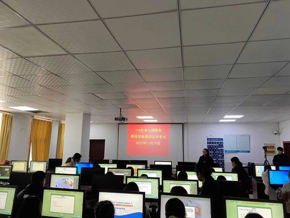 11月19日下午,管理服务学院“1+X”社会心理服务(中级)职业技能等级证书认证考试在图文信息中心508机房顺利举行,该院智慧健康养老与服务管理、婴幼儿托育服务与管理专业共计31名同学参加了考试。考试期间,管理服务学院院长陈颖、副院长李敏现场督导考务工作。
