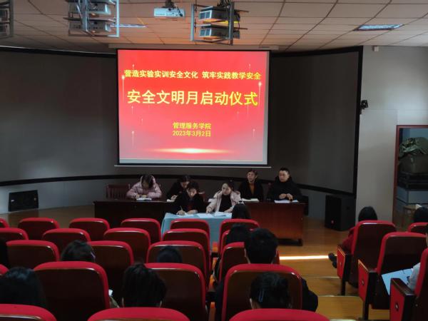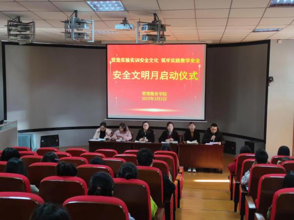 为进一步加强实训安全文化教育,强化实训安全意识,营造以人为本的实训室安全环境,筑牢实践教学安全防线,提升全体师生实训安全风险防范意识和防范能力,管理服务学院于3月2日下午在3栋216正式启动“实训室安全文明月”活动。管理服务学院党总支书记、院长陈颖,副院长李敏,教学管理科相关同志,各专业建设负责人,专业实践课教师,各班级学习委员共计90人参加,启动仪式由教学管理科科长王晓林主持。