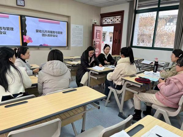 智慧健康养老服务与管理专业、婴幼儿托育服务与管理专业团队在3栋308教室召开主题教研活动。团队成员各抒己见,对于本年度参加教师教学能力大赛的两个作品进行了充分地讨论与交流,就参赛作品教学实施报告凝练、教学过程设计优化、教学亮点特色总结、视频拍摄细节打磨等提出了不用的修改和完善建议。此外,团队负责人还就本学期教学科研工作计划安排做了具体介绍,要求团队成员立足教师专业化发展和教育教学能力提升,一要积极参加各类专业理论学习与培训,夯实理论基础;二要全面做好学生技能大赛动员、培训与备赛工作,促进师生共进;三要提升课堂教学质量,积极参与“一师一优”精品课程建设,提升教学实效;四要强化问题意识,注重理论提升,着力提升科研素养。陈颖肯定了主题教研的活动形式,要求强化新老教师传承,分层分类管理、目标任务分解、责任到人,整体提升团队教育教学科研水平;参赛作品要紧扣大赛标准和变动,结合人才培养方案、课程标准以及学情,认真总结、优化设计、细思研磨,真正做到“以赛促教、以赛促学、以赛促练”。