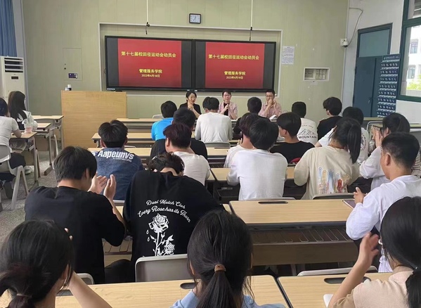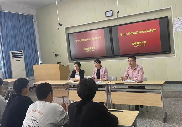 为做好第十七届校田径运动会各项筹备工作,4月18日中午,管理服务学院在3号教学楼302教室召开动员大会,管理服务学院副院长李敏、党总支副书记丁凡、教学管理科负责同志以及72名运动员参加了动员会。