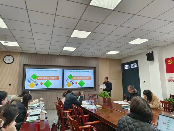 在教学能力大赛推进阶段,“婴幼儿家庭教育指导”课程团队负责人何世亮老师介绍了大赛备赛情况,并从教学设计、教学实施、实施效果、教学反思四个方面进行了课程实施报告现场汇报。郭媛媛从大赛备赛角度对参赛团队进行了指导,团队成员就教学内容重构、教学反思与特色等问题进行了深入研讨。