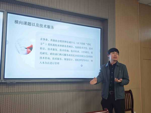 王伟作了《从立项到验收:教师开展横向课题的全流程解析》的专题讲座,从开展横向课题项目以及技术服务的原因、横向课题项目的来源渠道、横向课题项目的具体实施流程以及横向课题经费使用规范等方面进行辅导,系统性的对我校教师如何开展横向课题进行了全流程解析。