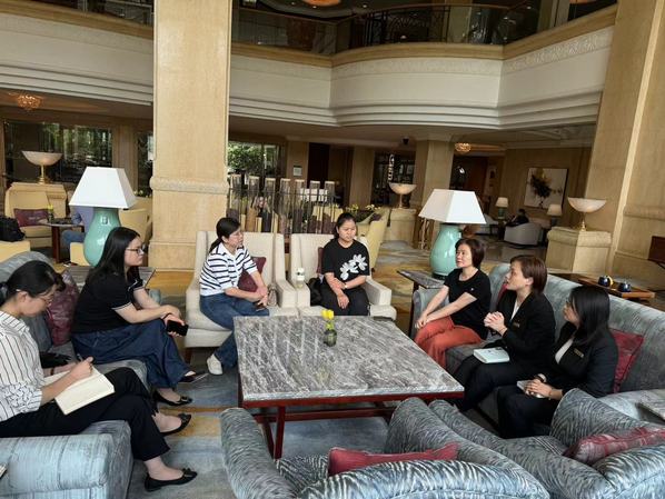 调研小组一行首站赴浦东香格里拉酒店,了解了酒店的发展历史、经营模式等,双方就人才培养、用人需求进行了深入交流。浦东香格里拉酒店是位于浦东陆家嘴金融贸易区的超豪华型高端酒店,酒店拥有981间客房和套房,是全球知名酒店品牌香格里拉酒店集团入驻中国的第一家酒店,拥有几十年的经营历史,也是香格里拉集团人才培养的重要输出基地。