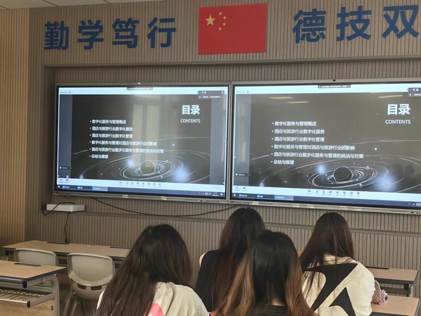 2024年 6月6日中午,管理服务学院酒店管理与数字化运营专业的企业课堂开讲啦。本期邀请到的企业主讲嘉宾是上海祥源希尔顿HR刘晓雨和前厅总监叶义军,讲座主题《酒店数字化服务与管理》。酒店管理与数字化运营专业负责人陈文玲、专业课教师代表以及全体2022级、2023级酒店管理与数字化运营专业同学参加。此次讲座以线上的形式开展,在3栋304、306、308三个教室设三个分会场。