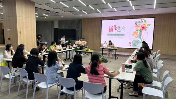 6月21日晚,我校徐基艳副教授受邀为安庆团市委“青年夜校”第四期花艺传统文化班授课。徐教授围绕中国传统插花的历史、要点、风格、造型、技法等进行了专业讲授,并和学员们共同完成现场成品操作和展示。学员们表示第一次尝试插花学习,不仅认识到了不同的花材和花器,成品展示成就感满满,同时也领略到传统插花诗情画意的不对称构图意境和自然简约之美,折服于中华文化里的传统审美。