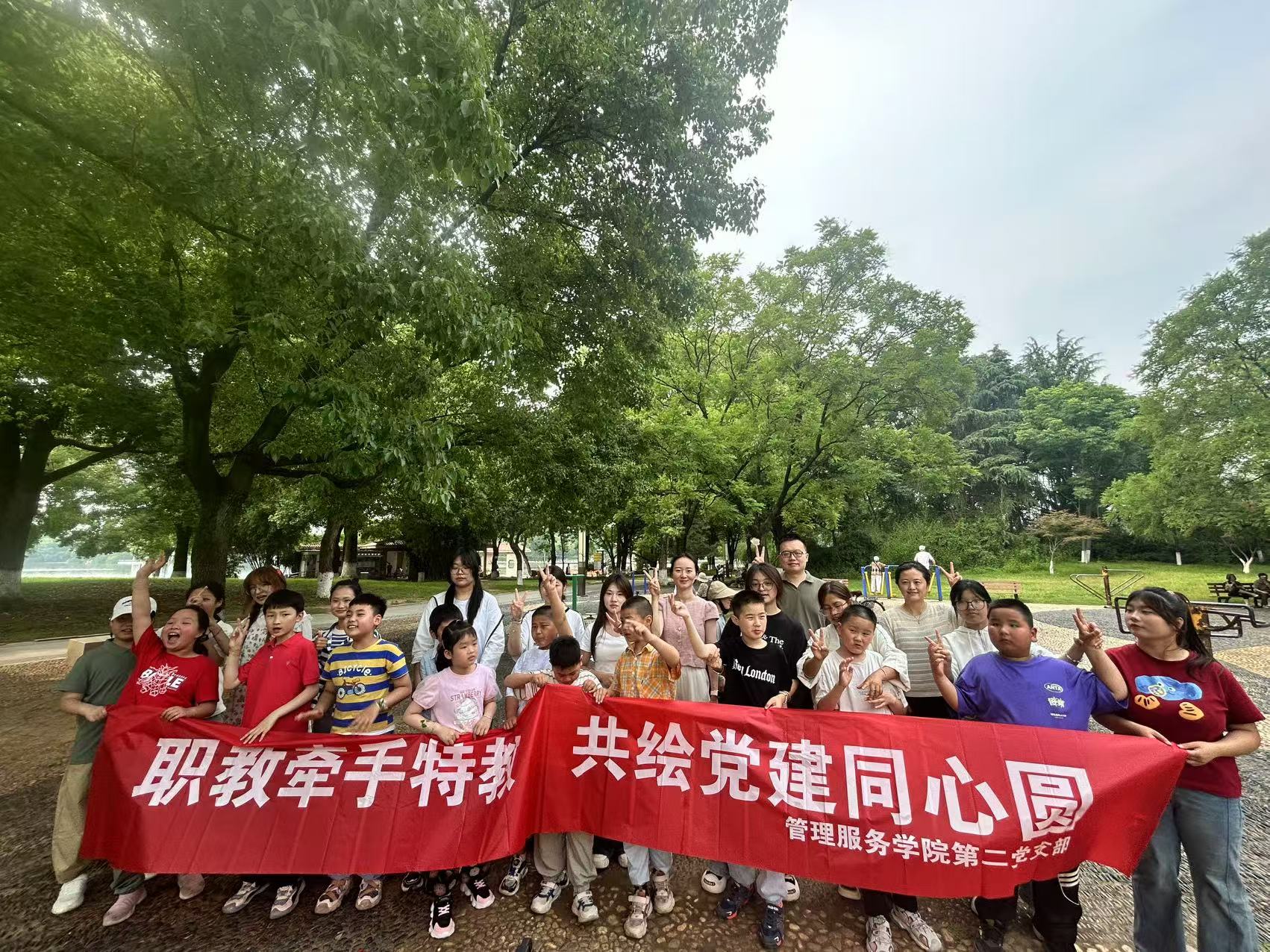 起点自闭症幼儿园负责人表示:“活动将专业康复理念融入游戏设计,孩子们在自然环境中体验了集体生活的乐趣,这对改善社交障碍具有重要意义。”管理服务学院第二党支部部党员教师吴雨燕指出:“此次共建是党建与专业实践的双向赋能。我们不仅用专业知识服务特殊儿童,更引导学生厚植教育情怀,未来将持续拓展‘党建+特教’服务模式,为融合教育注入红色动能。”