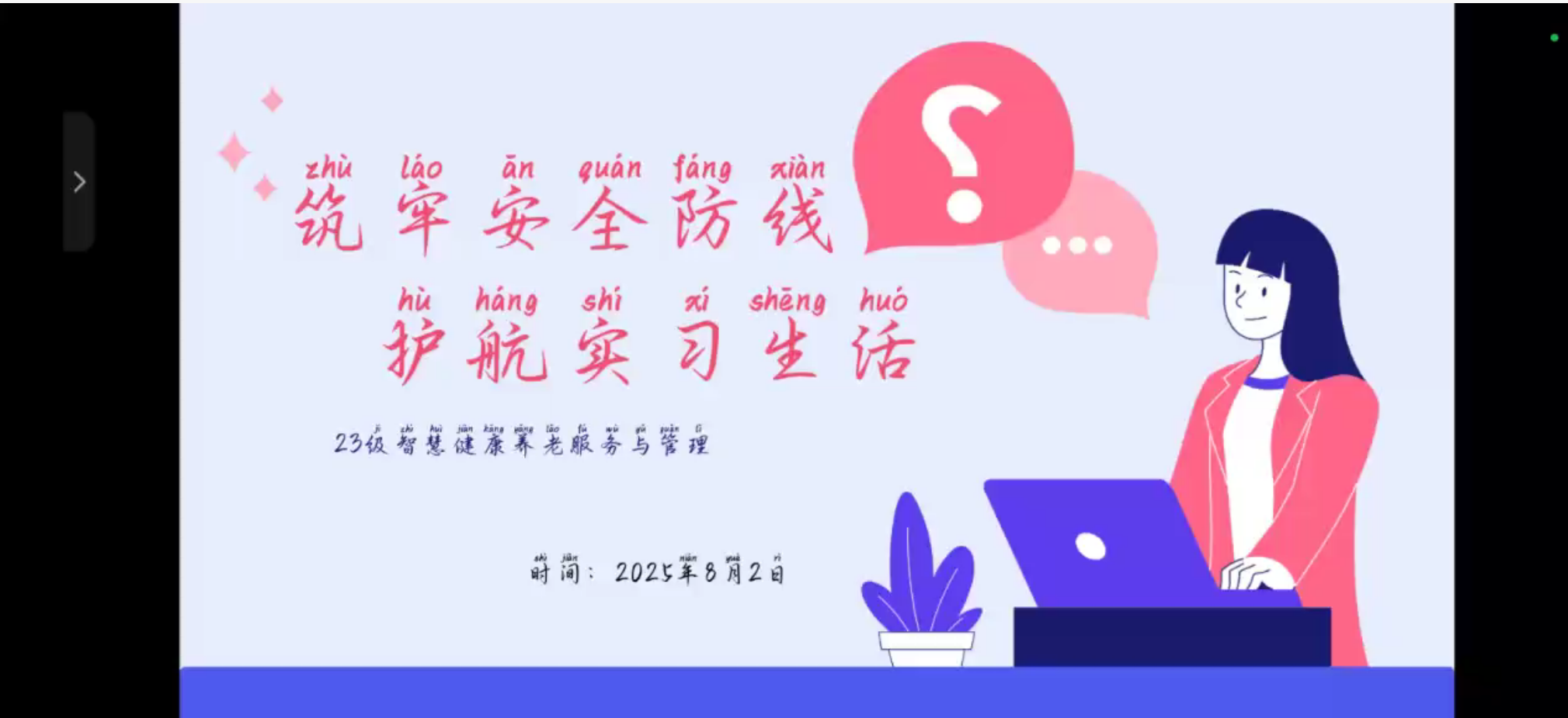 本次班会聚焦防溺水、防诈骗、实习安全、心理健康、交通安全等重点领域,采用案例讲解、互动问答等生动形式,将安全知识转化为可操作的行动指南。老师们结合暑期高频风险场景深入剖析隐患,针对暑期兼职学生讲解“实习环境安全”“合同签订陷阱”等实用技巧;针对高温天气详细解析防溺水自救方法;针对网络诈骗系统梳理各类网络诈骗套路等。24酒店管理、早期教育等班级创新设置“安全知识打卡”环节,学生与家长共同学习并适时反馈,辅导员即时答疑,实现家校联动共学。