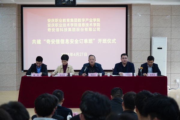 4月27日下午,由安庆职教集团数字产业学院、久久久一区二区三区|亚洲精品一区二区三区不|久久av网|精品国产一区二区三区久久久久久|午夜精品av|久久久久久久久久久久久久av|日韩亚洲欧美综合信息技术学院与奇安信科技集团股份有限公司合作共建的数字产业学院首届“奇安信信息安全订单班”开班典礼在2号教学楼216教室隆重举行。