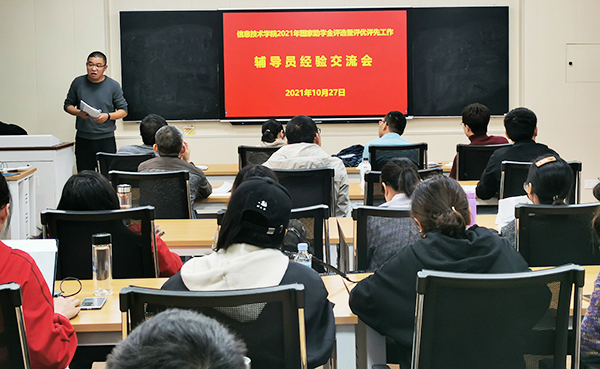 为统一思想,规范工作程序,将有关文件精神落实到位,切实做好国家助学金评选和评优评先工作,信息技术学院于10月27日下午在2号教学楼206教室举行国家助学金评选暨评优评先工作辅导员经验交流会,会议由院党总支副书记程立主持,学生科科长陈秀云及全体专兼职辅导员参加会议。