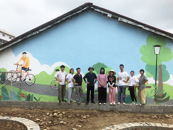 在为期九天的社会实践中,服务队的5位同学在动漫制作技术专业校企合作企业老师的指导下,经过与当地充分沟通和实地察看,围绕乡村振兴、和谐家风、健康生活、讲文明树新风、防溺水等主题,设计出了独具风格的墙绘方案。
