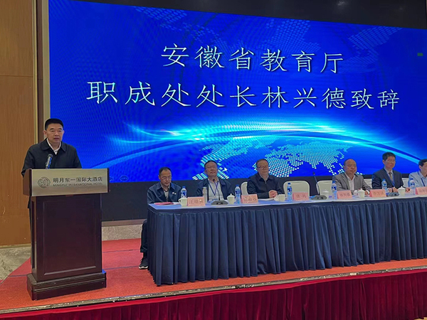 成立大会上,安徽省教育厅职成处处长林兴德致辞,向联盟的成立表示祝贺,对联盟的发展提出要求。