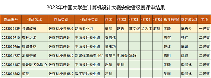 近日,2023年中国大学生计算机设计大赛安徽省级赛评审结果出炉,我校信息技术学院教师指导的学生作品共获得一等奖1项、二等奖5项、三等奖5项的好成绩。