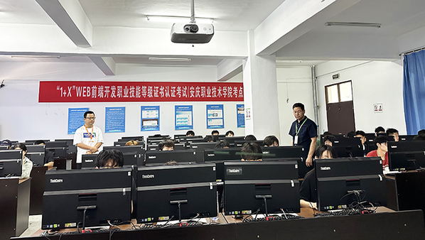 6月10日-11日,信息技术学院组织的人工智能系统平台实施、网络安全应急响应、动画制作、WEB前端开发等4项“1+X”证书认证考试在图文信息中心各实训室顺利举行。来自动漫制作技术专业、信息安全技术应用专业、计算机应用技术专业和计算机网络技术专业的210名学生参加了认证考试。
