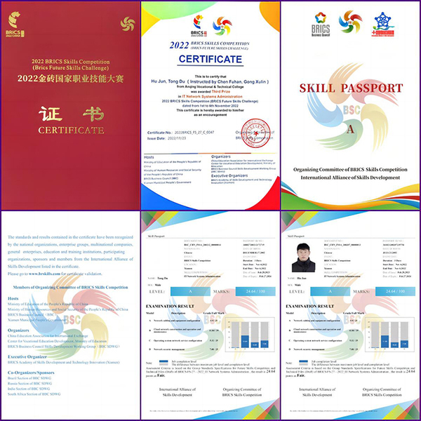 2020级计算机网络技术2班胡骏、2021级计算机网络技术(校企)2班童都组队在2022年金砖国家职业技能大赛中荣获三等奖,鉴于两名同学比赛成绩优异、技能突出,技能大赛组委会特授予该团队金砖国家技能护照。