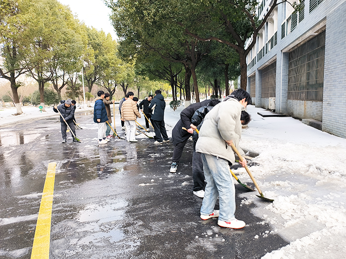 吹响集结号,已经返校的同学们纷纷响应,积极参与铲雪除冰的志愿活动。领取铁锹后,志愿者们在老师的带领下有序分工,默契配合,铲除路面冰雪,为平安校园保驾护航。寒风凛冽,吹不灭志愿者们的十足干劲,抗击积雪的奋斗中,每一位志愿者都不畏严寒,不惧困难,以饱满的热情和坚定的信念投身于这场冰雪战斗中。