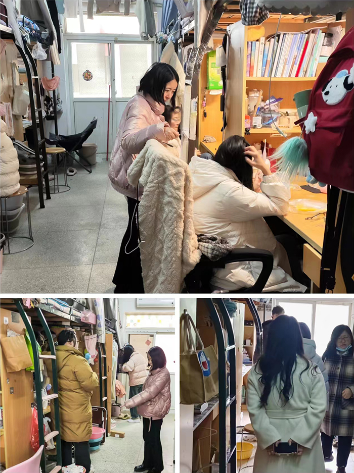 本次大检查,全体辅导员们深入学生宿舍,对学生宿舍是否使用大功率的暖手宝、小电锅、卷发棒等电器进行了仔细排查,反复强调用电安全;对是否存在宿舍内吸烟、乱扔烟头等现象进行安全检查,对发现的安全隐患立即整改;对是否存在消防安全隐患进行排查,组织学生参加消防演练强化学生消防安全意识;对学生宿舍中存在的卫生死角及时发现和清理,解决乱扔垃圾的问题,督促学生勤开窗通风,经常清扫宿舍,自带垃圾下楼,养成良好的生活习惯,积极创建文明宿舍。
