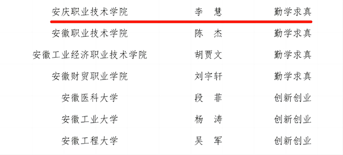 近年来,我校高度重视人才培养工作,不断激励青年学生自立自强,奋发有为。这次李慧同学获评“安徽省大学生自强之星”充分彰显了我校育人成效,显现出我校正以良好的教风学风为发展新质生产力贡献职教力量!(文/图:杜青 审稿:疏国会)