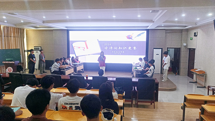 为深入弘扬中华优秀传统文化,提升同学们的文学素养和人文精神,激发同学们的民族自豪感,我院于2024年6月3日在2号教学楼216信仰报告厅举办以“诵千古诗词,扬中华美德”为主题的古诗词知识竞赛。