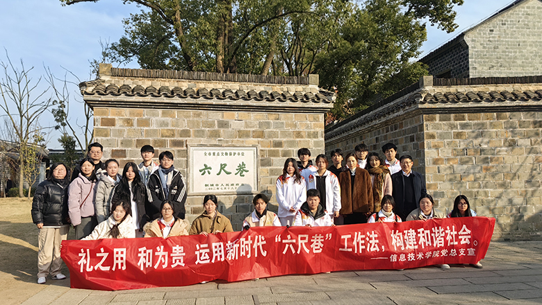 为深入学习贯彻习近平总书记考察安徽重要讲话精神,从中华优秀传统文化中汲取智慧和力量,锤炼党性修养,12月17日,信息技术学院党总支副书记陈富汉率部分党员教师及39名学生入党积极分子,赴桐城市六尺巷开展“礼之用,和为贵,运用新时代‘六尺巷’工作法,构建和谐社会”主题党日活动。