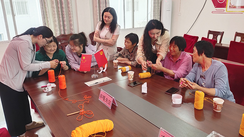 在平岭村,卓嘎央宗和董辩辩两位老师面向天华镇留守妇女开展了“巧手织梦,她力量振兴”的技能提升活动。活动中,两位老师耐心地教授她们勾粽子、勾包等手工技艺。通过生动的讲解和简单的步骤演示,她们很快掌握了操作技巧,并在实践中不断熟练起来。活动不仅提升了留守妇女的技能水平,更为她们增添了业余爱好和增收的途径,增强了她们的自信心。