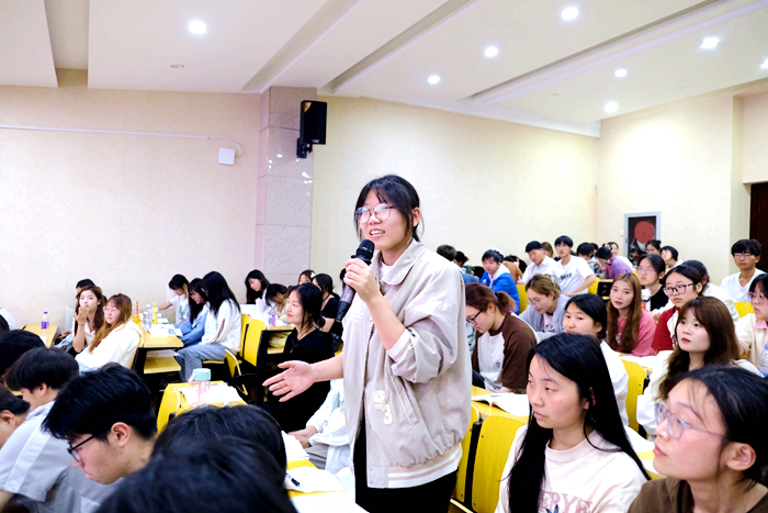 讲座中,毕明生以互动形式启发师生就如何铸牢中华民族共同体意识这一问题进行思考,现场互动气氛热烈。他与学生从全面推进中华民族共有精神家园、推动各民族共同走向社会主义现代化、促进各民族广泛交往交流交融、提升民族事务治理体系和治理能力现代化水平、防范民族领域重大风险隐患这五个方面共同探讨如何铸牢中华民族共同体意识。他强调文化是一个国家、一个民族的灵魂,坚定文化自信构筑中华民族共有精神家园是铸牢中华民族共同体意识的有效措施。他以中华优秀传统文化的代表“诗词文化”为切入点,以李白、白居易等诗词大家为引,以“天苍苍、野茫茫,风吹草地见牛羊”“桃花谭水深千尺,不及汪伦送我情”等诗句为例,论证中华文化是各民族共同创造的,各民族文化兼收并蓄、交相辉映,使得中华文化历久弥新,引导学生树立正确的历史观、民族观、文化观。最后,他勉励师生多读书,在书中感知中华优秀传统文化的魅力,不断提升文化自信,深入理解并践行铸牢中华民族共同体意识。