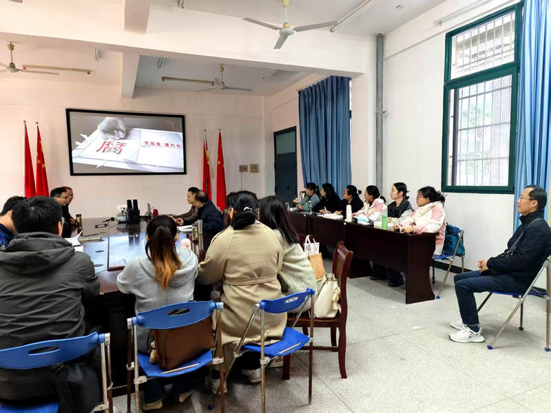 为推动党纪学习教育走深走实,抓好以案促学、以案说纪,教育引导党员进一步严规矩、明底线、知敬畏,10月22日下午,马克思主义学院在三号教学楼106会议室集中观看警示教育片《一刻不松 寸步不让》,传达学习违反中央八项规定精神典型案例,推动作风建设常态化长效化。马克思主义学院全体党员教师参会。